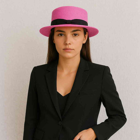 Canotier de Paille rose fushia